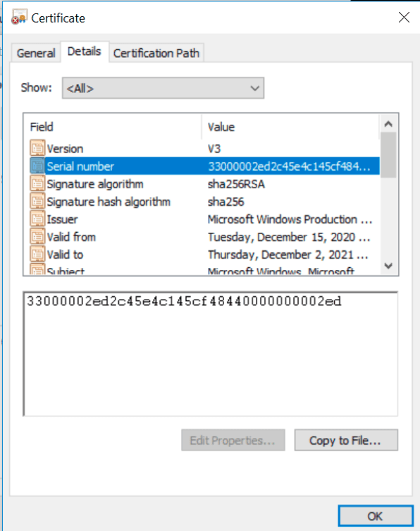 Truesec has also observed that the malware has the same digital signature serial number as a Zloader sample, 950ad539dfc8e16c07d24dbb37ae19daa0b2f32164ba0cb3c81fa7e689f274e1 [13]. Investigation is still ongoing regarding this.