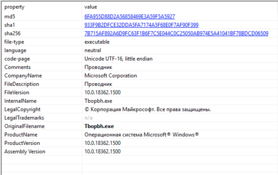 The file has a digital signature, with the following attributes in the version information. These are likely forged to look like a legitimate file.