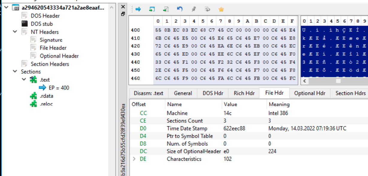 Investigating the time stamp for the sample, it indicates that is compiled on March 14, 2022, showing that it was done just before the attack was conducted.