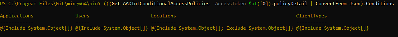 Playing Around With The Above Modules, I Realized That It Was Perfectly Possible To Get An Access Token For AAD Graph API As An End User, And Actually Exporting Conditional Access Policies Just Like That: