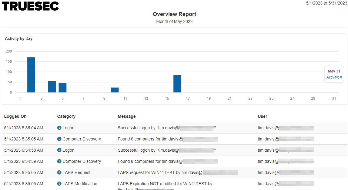 If the Windows Event Log isn’t robust enough, the built-in Reporting may be what you are looking for. Standard reports are currently available, and more reports will be added as more customers use the product. We continuously update the reports based on what you, the customer, need and believe is essential.