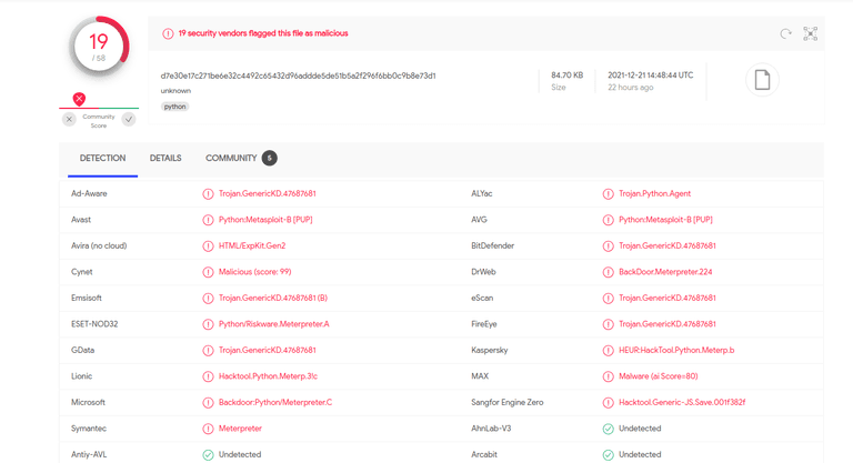 The file is a base64 encoded payload that installs a Meterpreter reverse shell to 185[.]254[.]196[.]122:4445